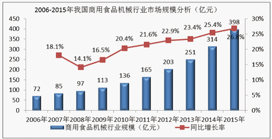图表33:2006-2015年我国商用食品机械行业市场规模分析