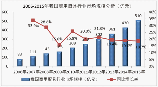 图表29:2006-2015年我国商用厨具行业市场规模分析